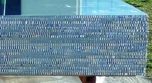 Tento panel se skládá z několika vrstev různých materiálů. Základem panelu jsou povrchové hliníkové plechy, které jsou slepeny s velmi lehkým voštinovým jádrem. Touto skladbou nám vzniká velmi zajímavý výrobek, který předčí Vaše očekávání.